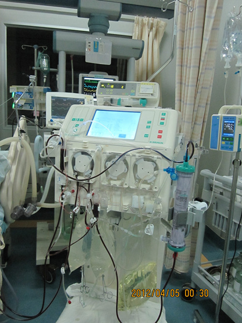 早在2011年,我院就籌集資金引進了一臺價值30余萬元的德國貝朗床旁血濾機。同時,派出優(yōu)秀醫(yī)護人員外出進修學習CRRT技術。此次我院成功開展CRRT技術,得益于院領導對重點學科建設的高度重視,也是ICU全體醫(yī)護人員共同努力的結果。