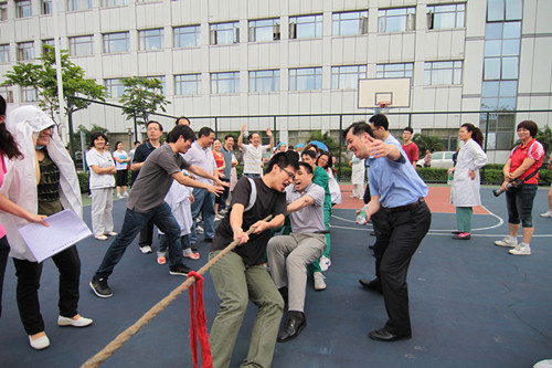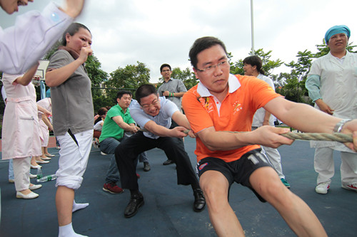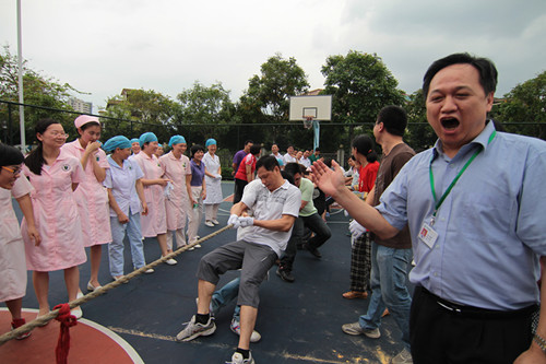 53下午,樂(lè)從醫(yī)院全體員工在醫(yī)院籃球場(chǎng)舉行了“慶祝五一”拔河比賽。