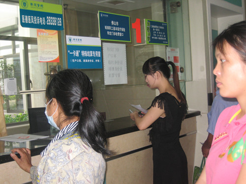體驗(yàn)患者角色的志愿者正在繳費(fèi)