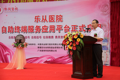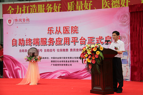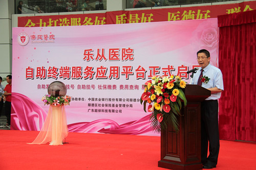 順德區(qū)政協(xié)副主席、衛(wèi)生和人口計(jì)劃生育局常務(wù)副局長(zhǎng)劉明表示,我院在順德區(qū)醫(yī)院中首開(kāi)先河,啟動(dòng)自助服務(wù)應(yīng)用平臺(tái),這是順德區(qū)民生工作的一件大事,必將為區(qū)醫(yī)療衛(wèi)生事業(yè)的快速蓬勃發(fā)展起到極大的推動(dòng)作用。