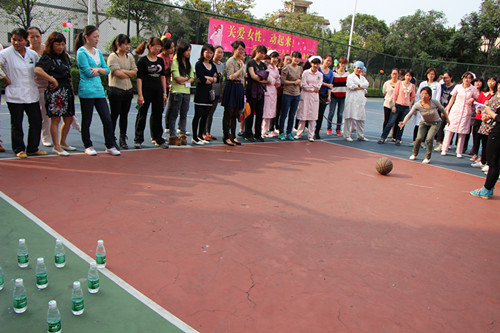 本屆趣味運動會全院各科女職工踴躍參與,共分成14個參賽隊,設置五類比賽項目,分別有:水果大連蹲、蒙眼吃水果、搶板凳、呼啦圈前行、超級保齡球等。每一個比賽項目都可以鍛煉大家動手動腦的能力也可以鍛煉大家在工作中團隊合作的精神。