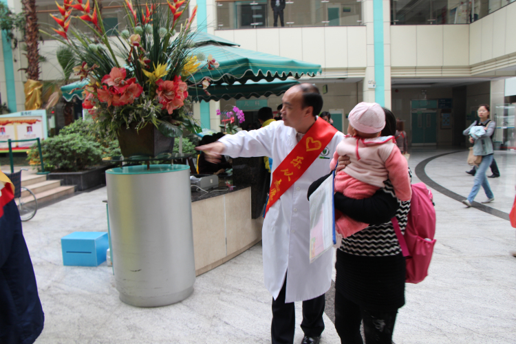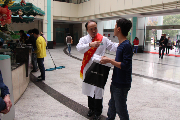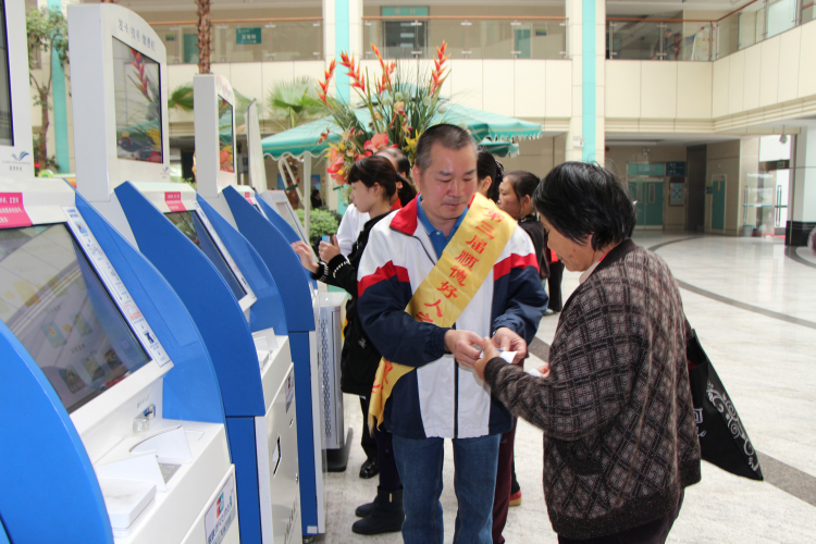 4月13日上午,一群身著“順德區(qū)紅十字會(huì)無(wú)償獻(xiàn)血志愿工作者”隊(duì)服的志愿者出現(xiàn)在樂(lè)從醫(yī)院門診大堂,他們有的幫助患者使用自助終端服務(wù)機(jī)進(jìn)行掛號(hào),有的幫助獨(dú)自帶小孩就診的父母,有的協(xié)助行動(dòng)不便的患者……其中,有兩位40多歲的男人顯得格外活躍和耀眼,他們和其他志愿者一樣,熱情而又主動(dòng)地幫助患者,他們積極投入的態(tài)度,贏得了在場(chǎng)志愿者和患者的交口稱贊。這兩位志愿者,一位是第三屆“順德好人”麥柱輝先生,另一位就是樂(lè)從醫(yī)院陳永韶副院長(zhǎng)。