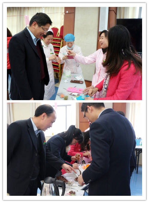 活動(dòng)分為“愛(ài)的DIY手工巧克力”和“元宵猜燈謎”兩個(gè)環(huán)節(jié)。只見(jiàn)參加活動(dòng)的人員在桌前圍成一堆,原來(lái)大家正按照分好的小組自制巧克力。小組成員們分工明確,一個(gè)研磨可可粉,一個(gè)往模型上添加材料……大家充分發(fā)揮想象力,小心翼翼地添加不同顏色的可可粉和巧克力餡兒。不一會(huì)兒,香甜可口的巧克力便出爐了——愛(ài)心、機(jī)器人、恐龍、汽車、扇子……各式各樣的巧克力蘊(yùn)含著大家的元宵祝福。樂(lè)從醫(yī)院陳啟康院長(zhǎng)、陳永韶副院長(zhǎng)、何暖堅(jiān)副院長(zhǎng)和鄭華嬰副院長(zhǎng)也到現(xiàn)場(chǎng)感受熱鬧的元宵氣氛,他們對(duì)同事們遞來(lái)的巧克力贊不絕口,大家臉上都洋溢著燦爛的笑容。
