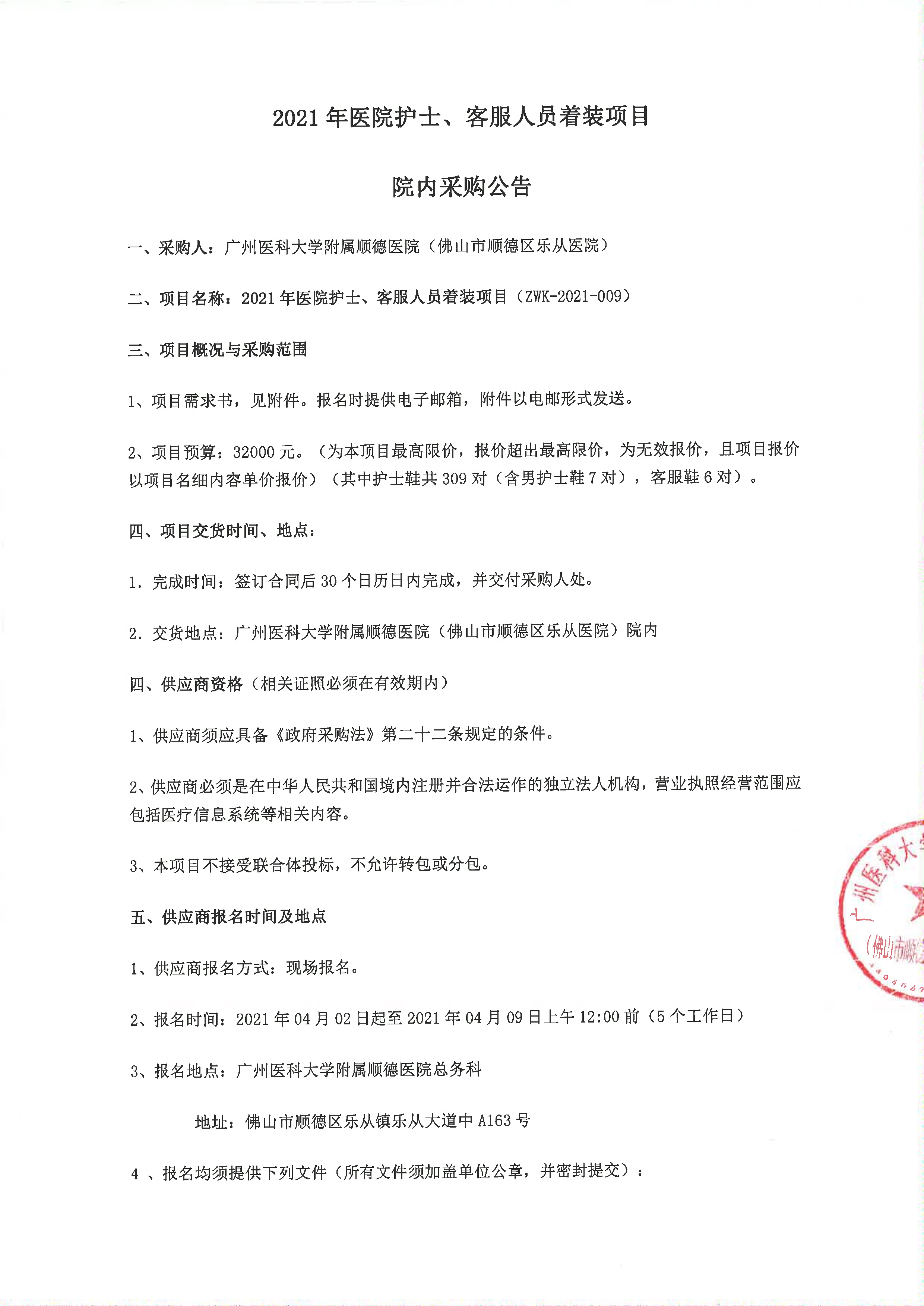 2021醫(yī)院護(hù)士、客服人員著裝項目院內(nèi)采購公告