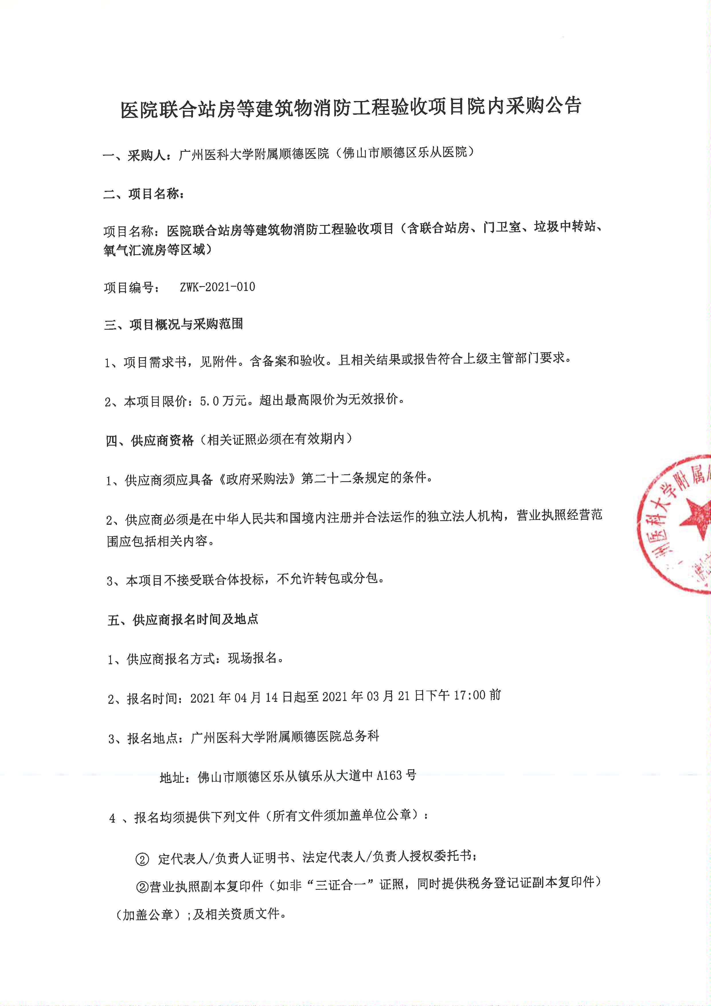 醫(yī)院聯(lián)合站房等建筑物消防工程驗(yàn)收項(xiàng)目院內(nèi)采購(gòu)公告