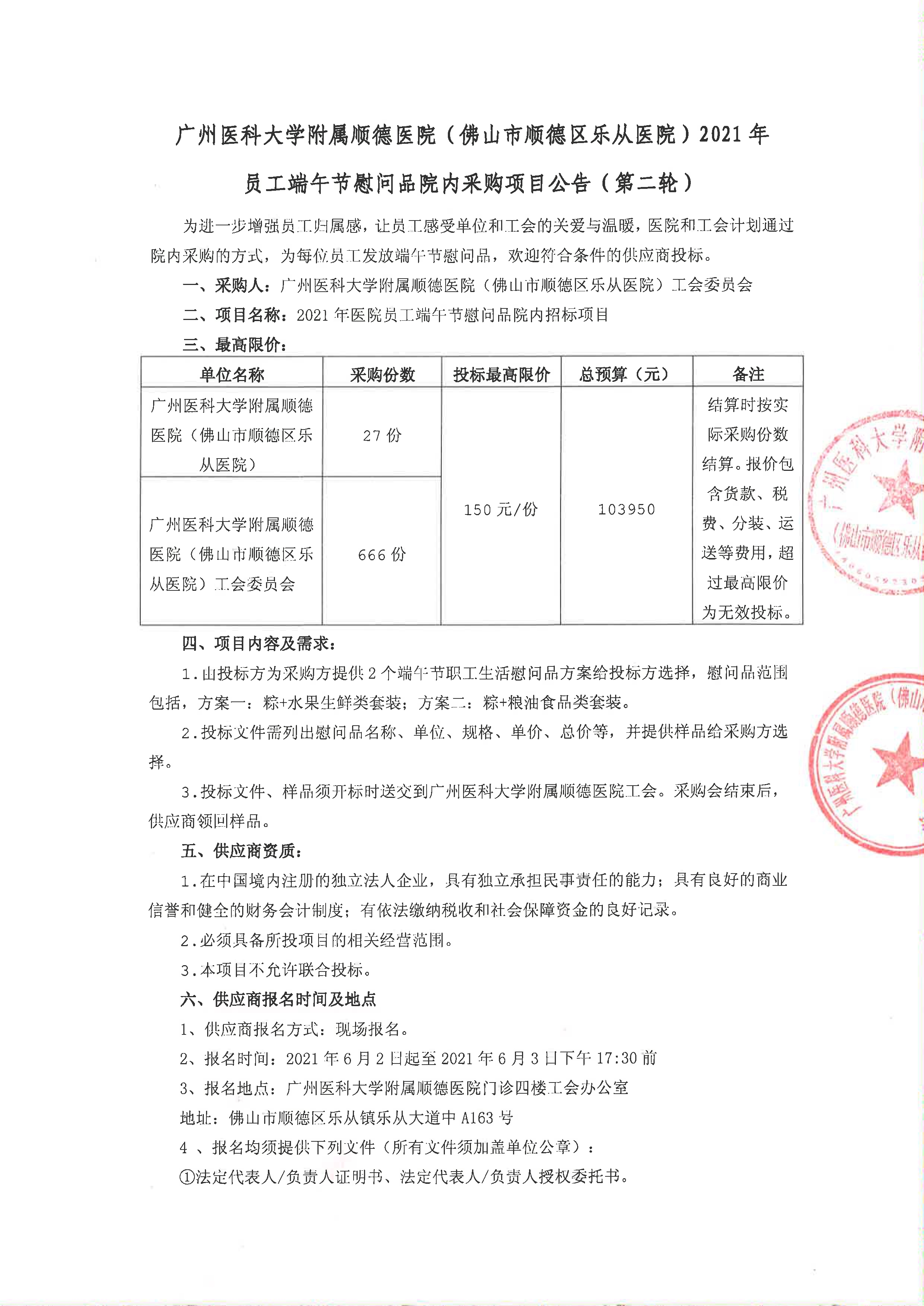 員工端午節(jié)慰問(wèn)品院內(nèi)采購(gòu)項(xiàng)目公告(第二輪)