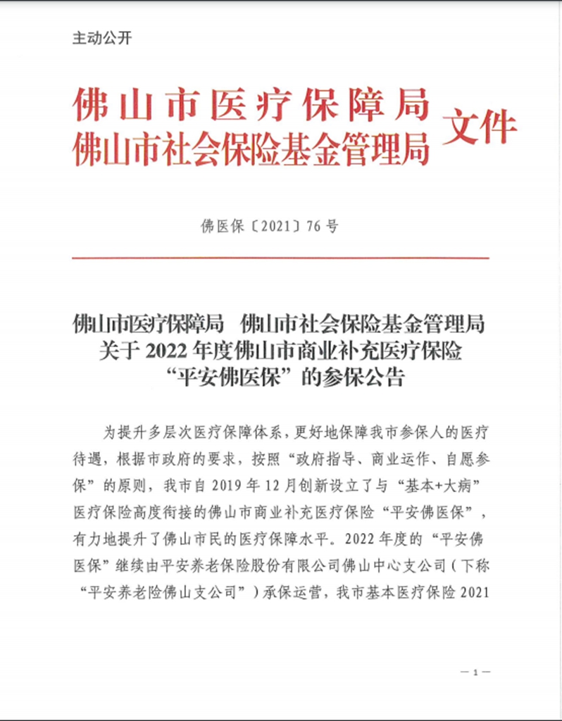 佛山市醫(yī)療保障局 佛山市社會(huì)保險(xiǎn)基金管理局關(guān)于2022年度佛山市商業(yè)補(bǔ)充醫(yī)療保險(xiǎn)“平安佛醫(yī)?!钡膮⒈9?/font>