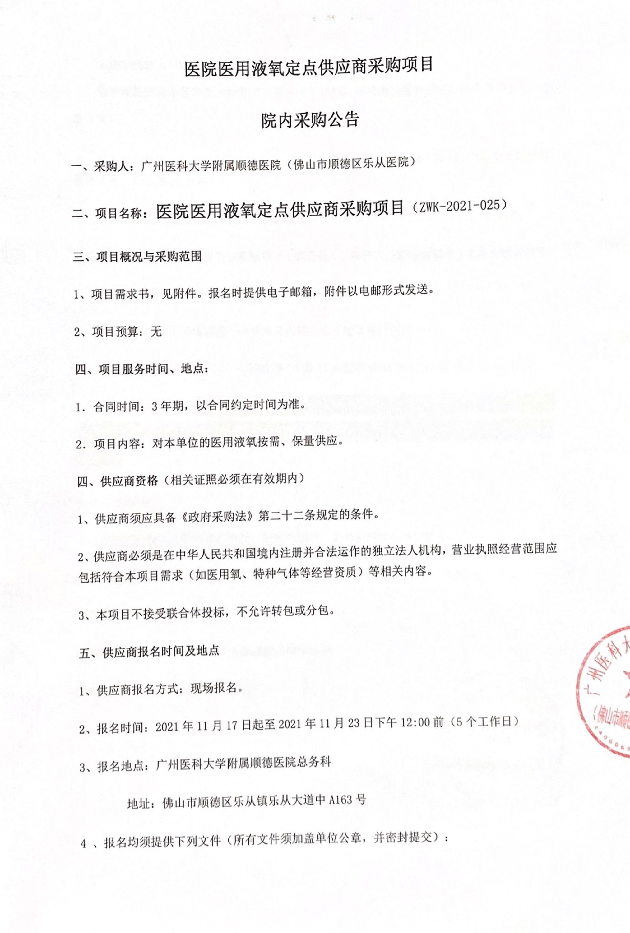 醫(yī)院醫(yī)用液氧定點供應(yīng)商采購項目公告