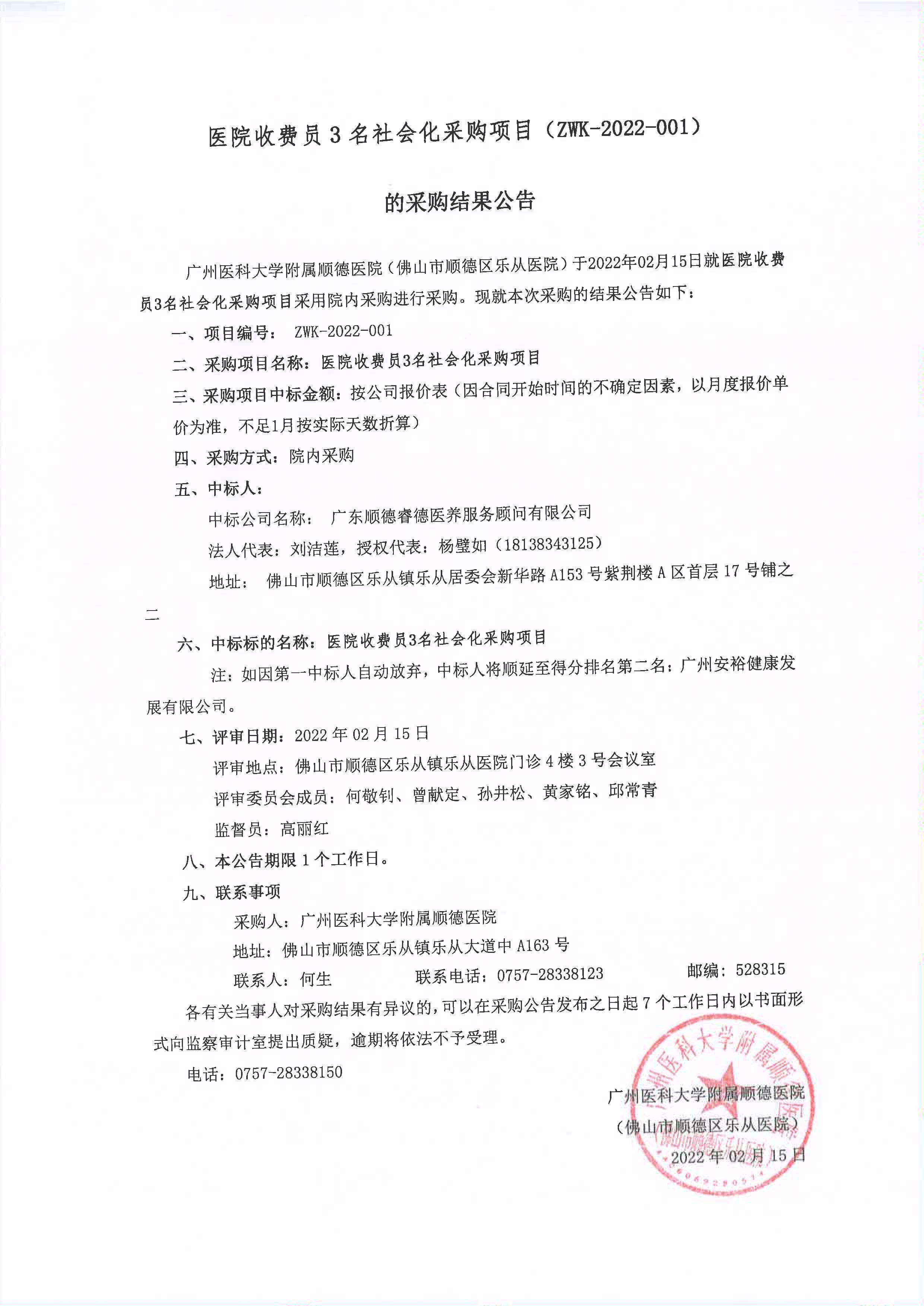 醫(yī)院收費(fèi)員3名社會化采購項目(ZWK-2022-001)