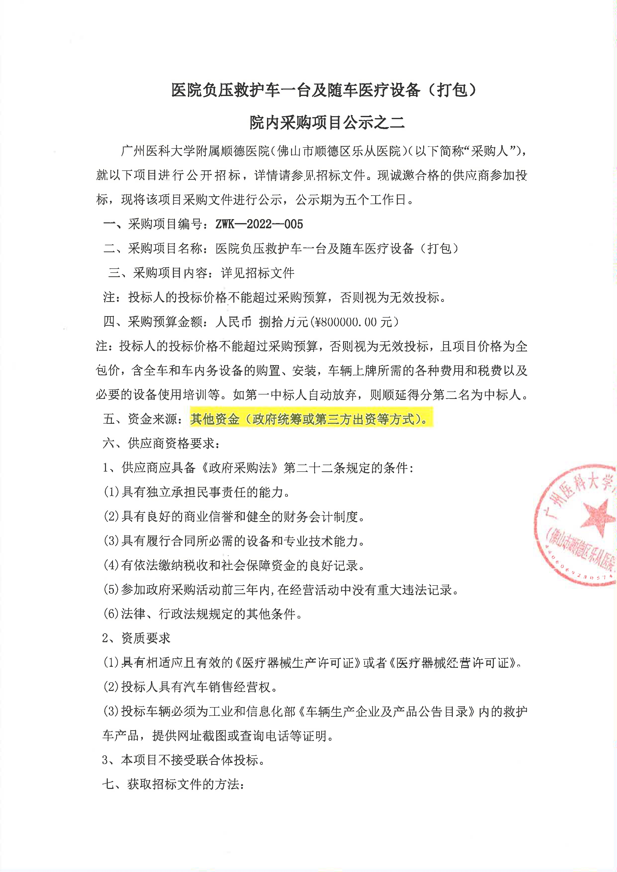 醫(yī)院負(fù)壓救護(hù)車一臺(tái)及隨車醫(yī)療設(shè)備(打包)院內(nèi)采購項(xiàng)目公示之二