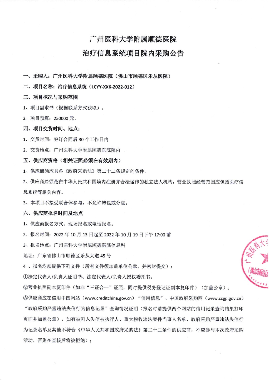 治療信息系統(tǒng)項(xiàng)目-院內(nèi)采購(gòu)公告