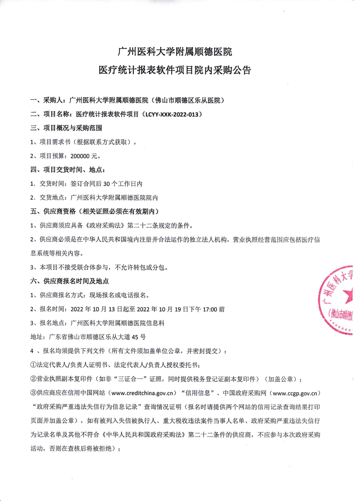 醫(yī)療統(tǒng)計(jì)報(bào)表軟件項(xiàng)目-院內(nèi)采購(gòu)公告