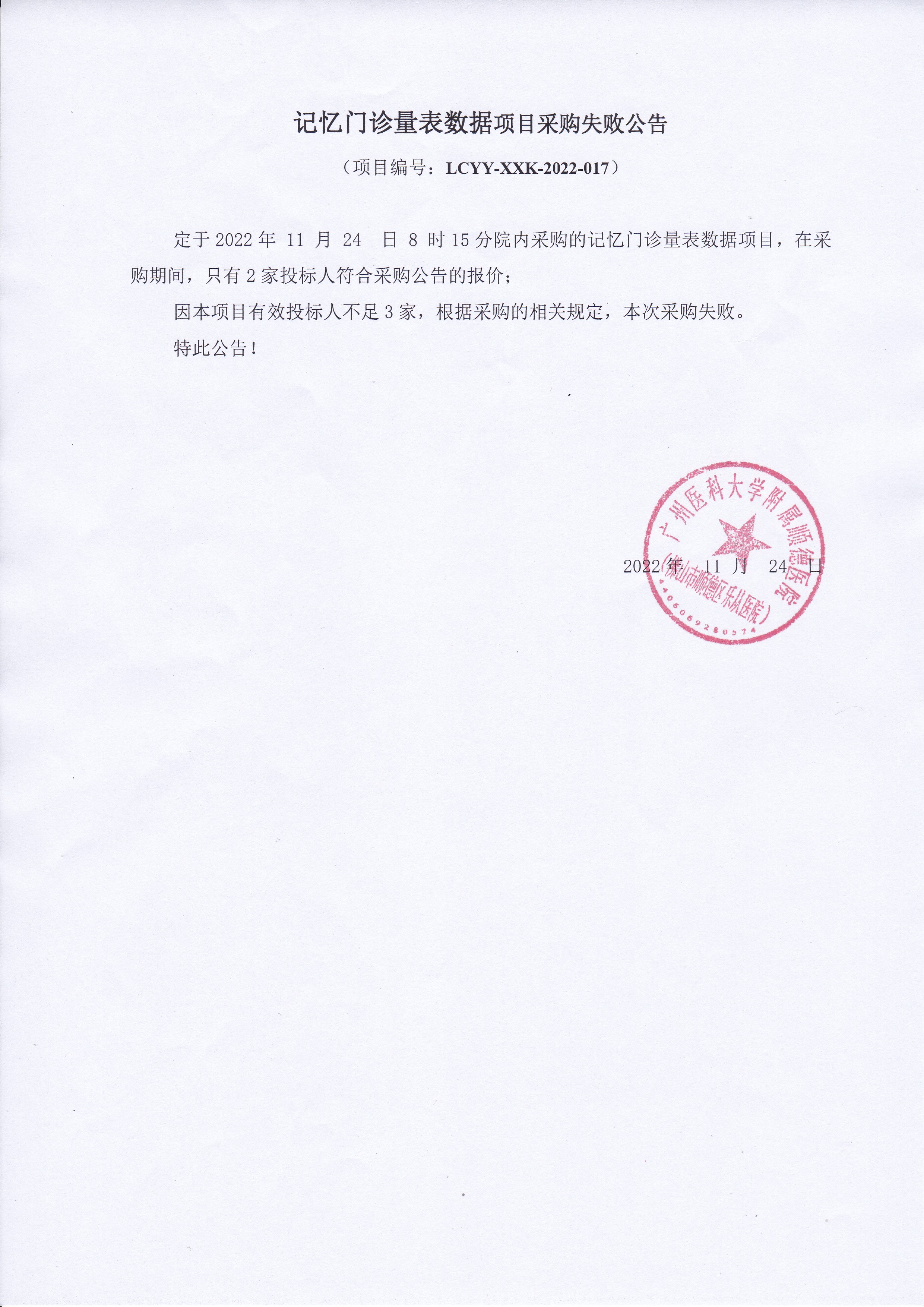 記憶門診量表數(shù)據(jù)項(xiàng)目采購失敗公告