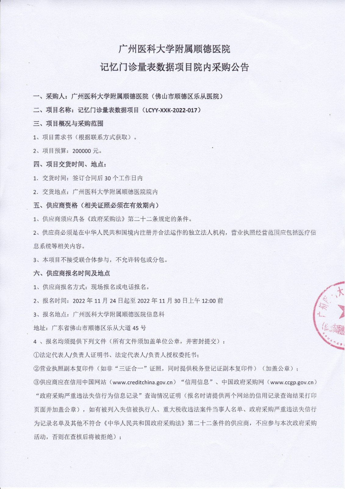 記憶門診量表數(shù)據(jù)項目院內(nèi)采購公告二