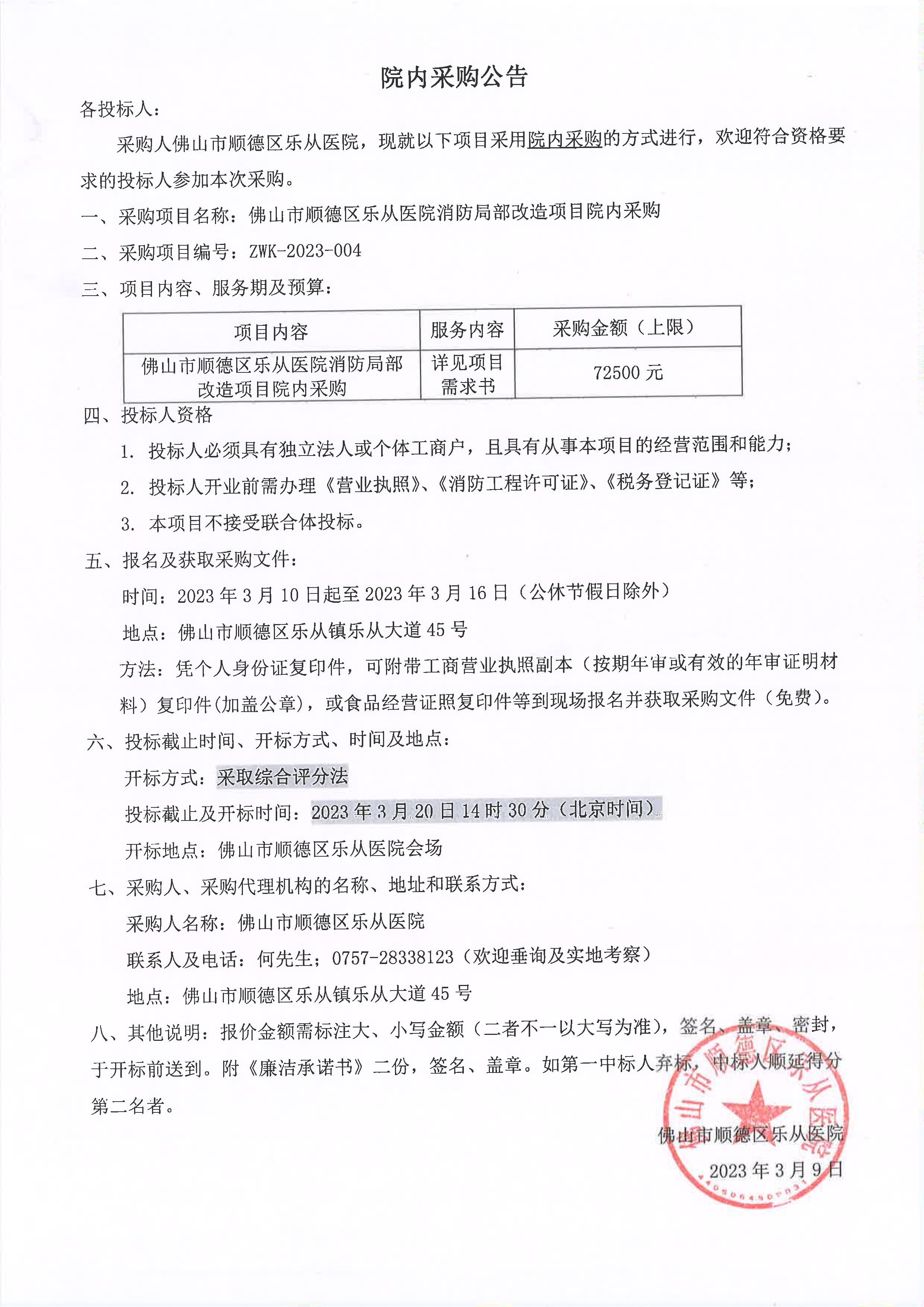 醫(yī)院消防局部改造項目院內(nèi)采購公告