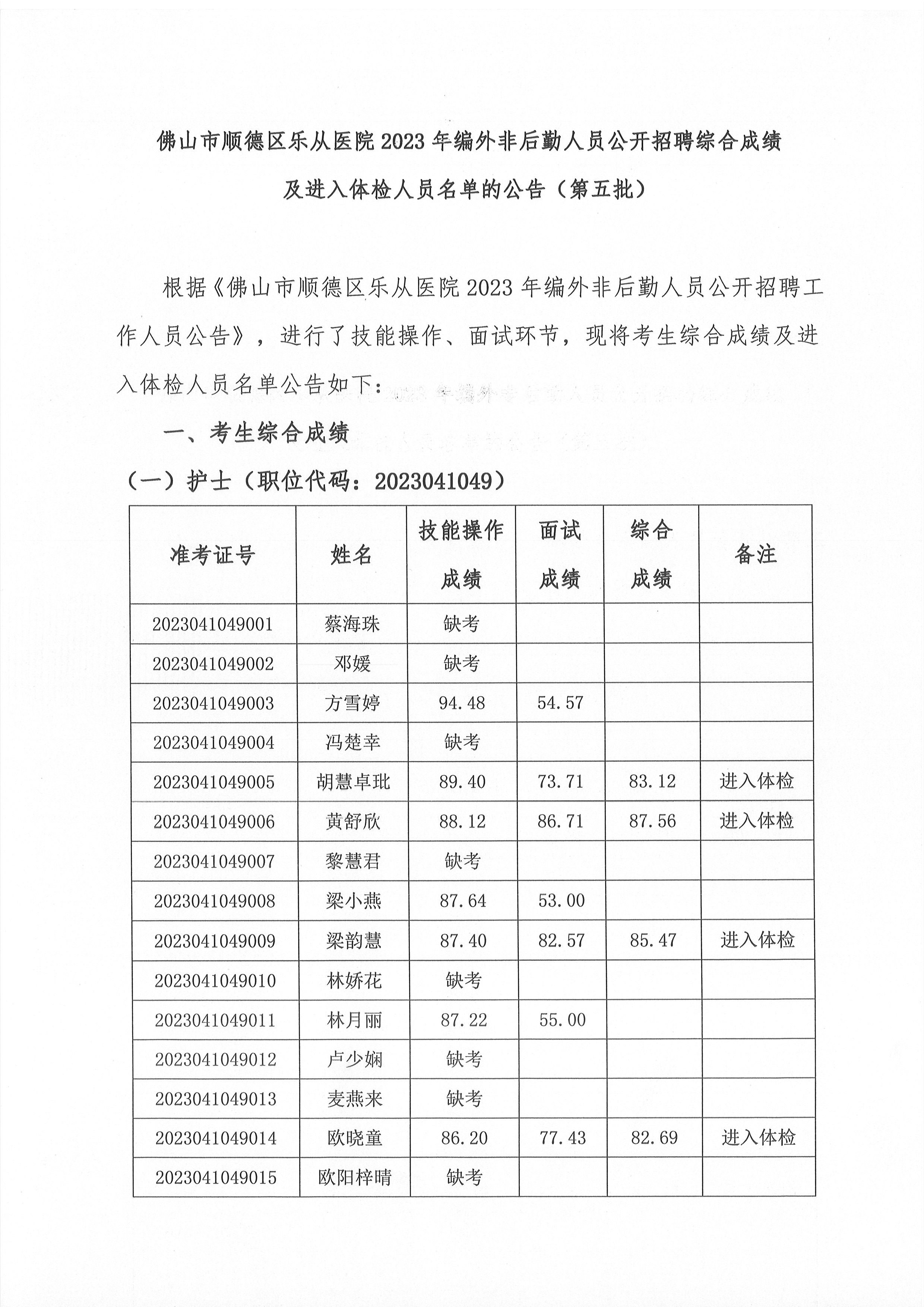 2023年編外非后勤人員公開招聘綜合成績及進入體檢人員名單的公告(第五批)