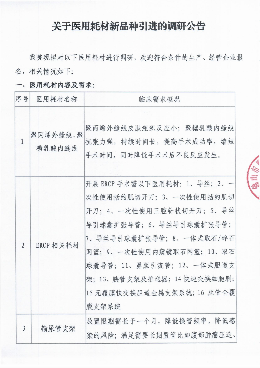 關(guān)于樂從醫(yī)院醫(yī)用耗材新品種引進(jìn)的調(diào)研公告