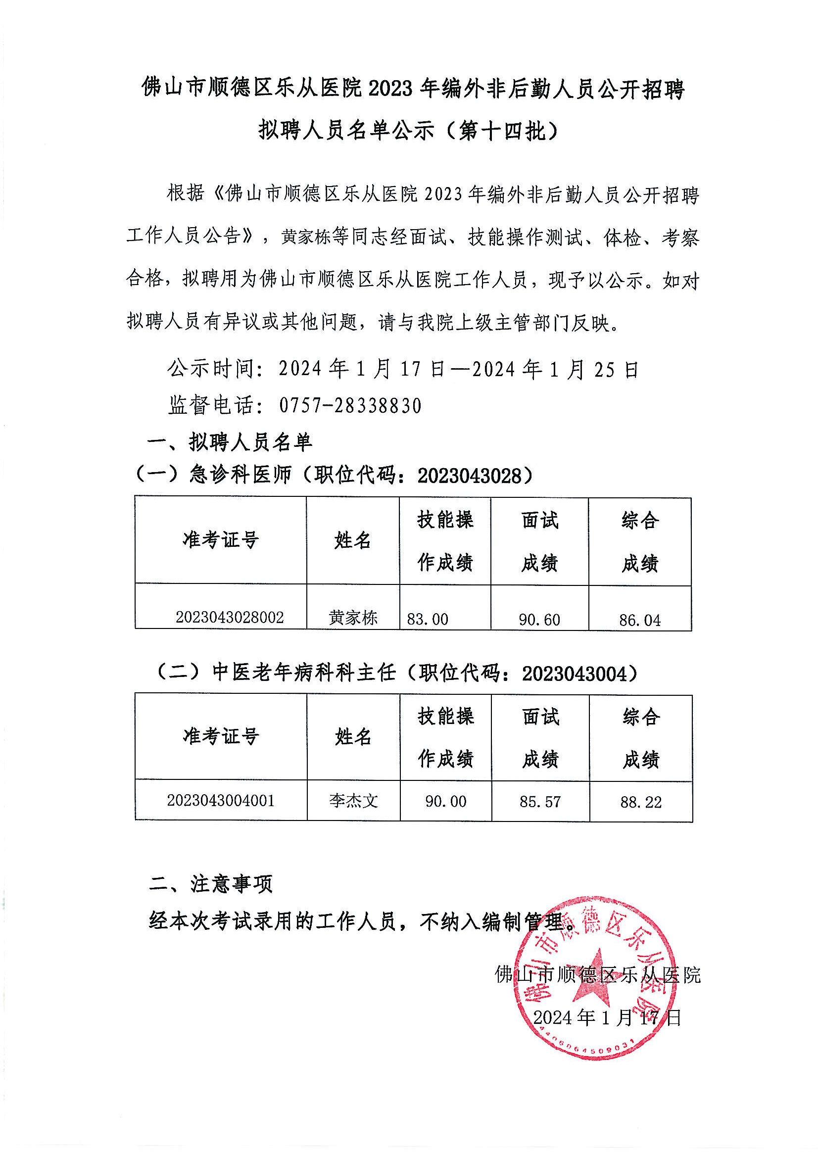 樂從醫(yī)院2023年編外非后勤人員公開招聘擬聘人員名單公示(第十四批)