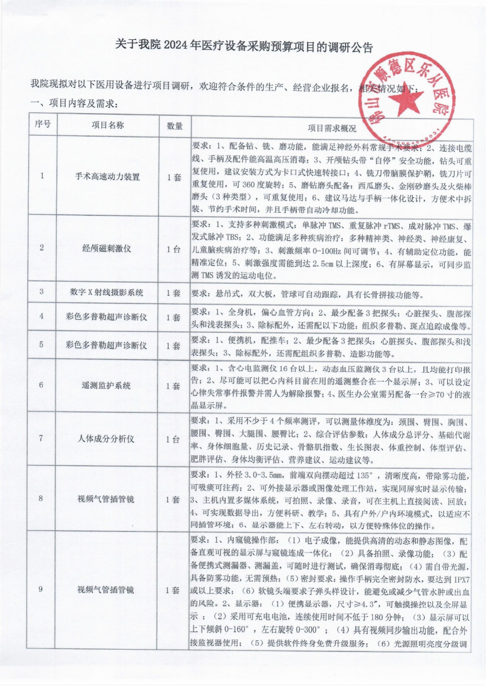 關(guān)于樂(lè)從醫(yī)院2024年醫(yī)療設(shè)備采購(gòu)預(yù)算項(xiàng)目的調(diào)研公告