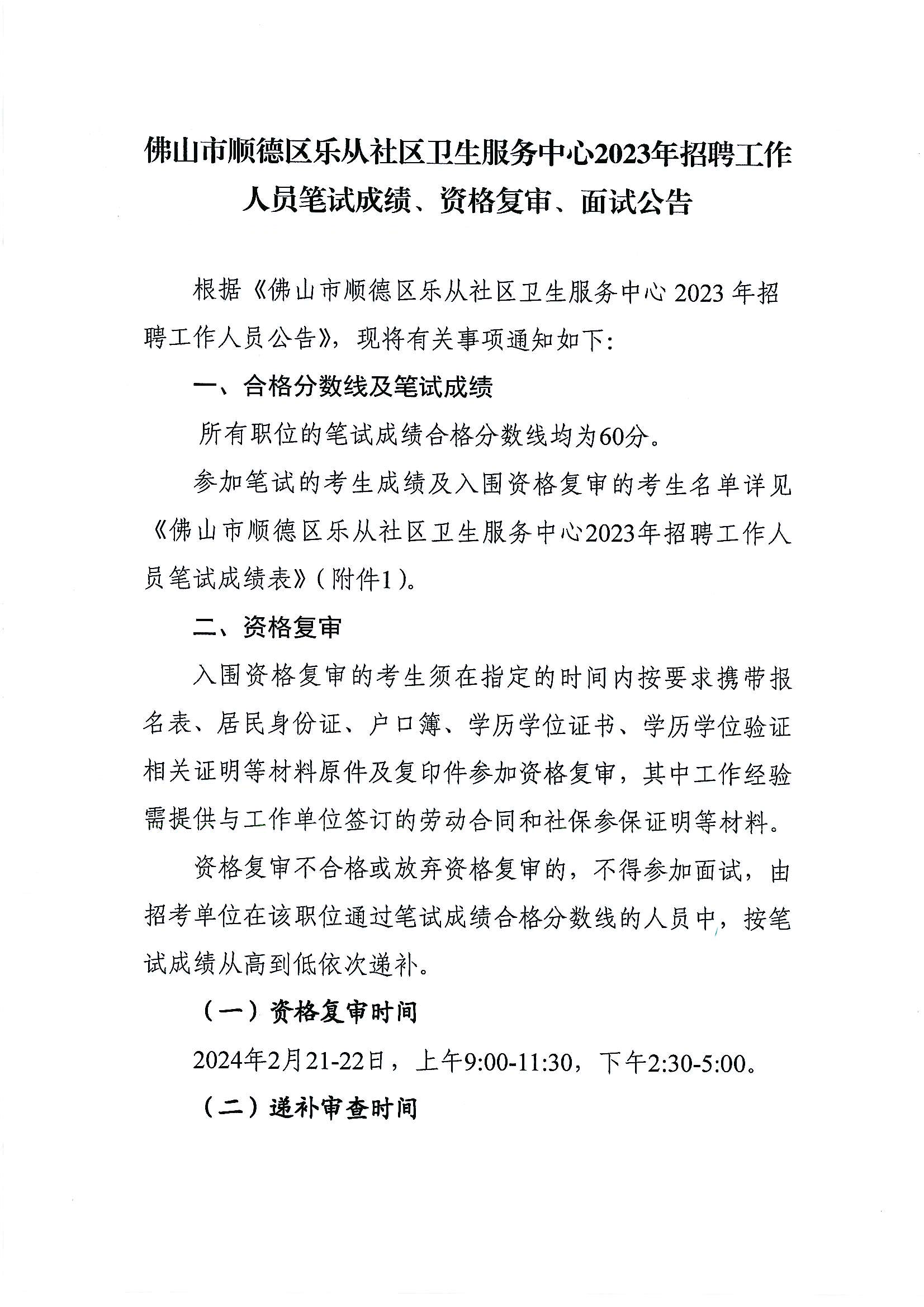 樂(lè)從社區(qū)衛(wèi)生服務(wù)中心2023年招聘工作人員筆試成績(jī)、資格復(fù)審、面試公告