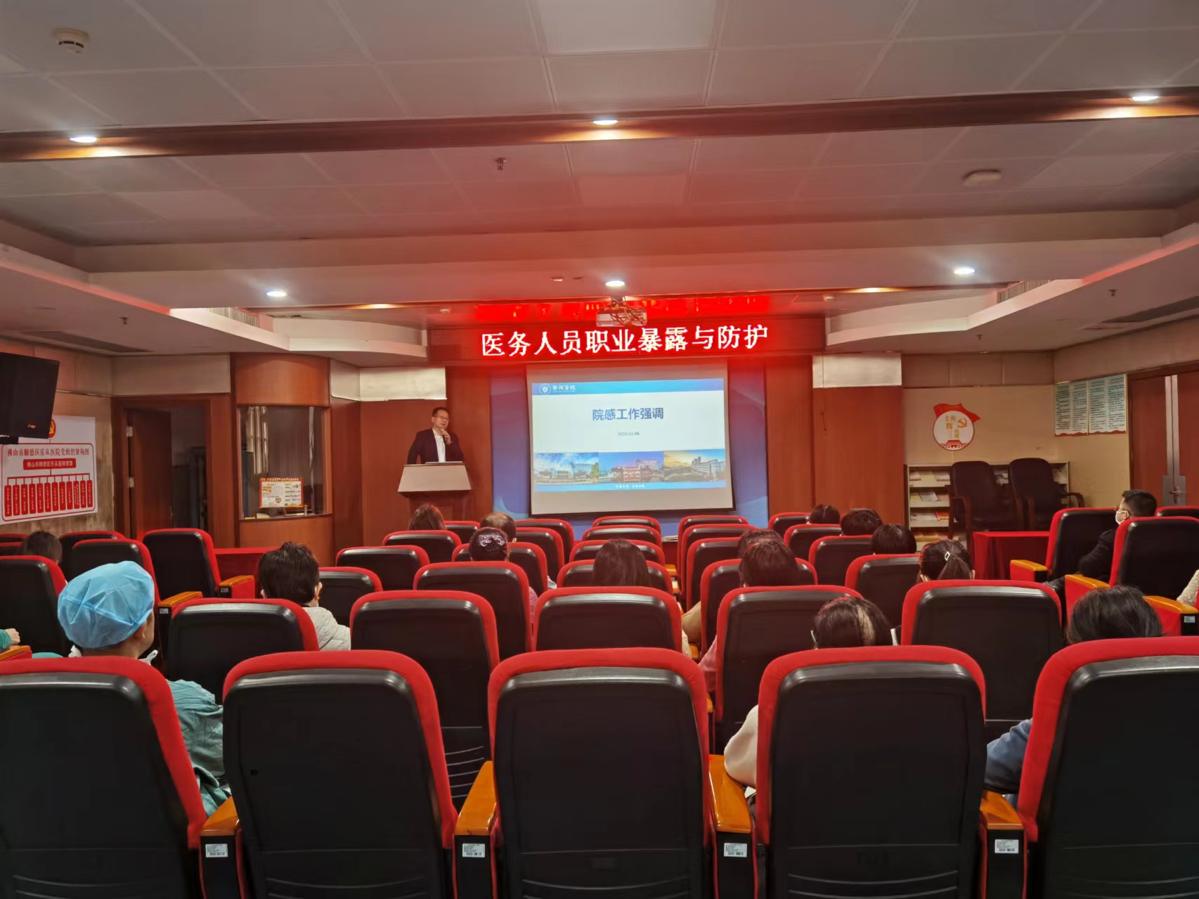 為增強(qiáng)醫(yī)務(wù)人員自我防護(hù)意識,提高職業(yè)暴露的應(yīng)急處置能力,降低工作人員感染風(fēng)險(xiǎn),2月6日下午,院感科組織開展醫(yī)務(wù)人員職業(yè)暴露與防護(hù)培訓(xùn),科主任、護(hù)長、院級督導(dǎo)員約100人出席。