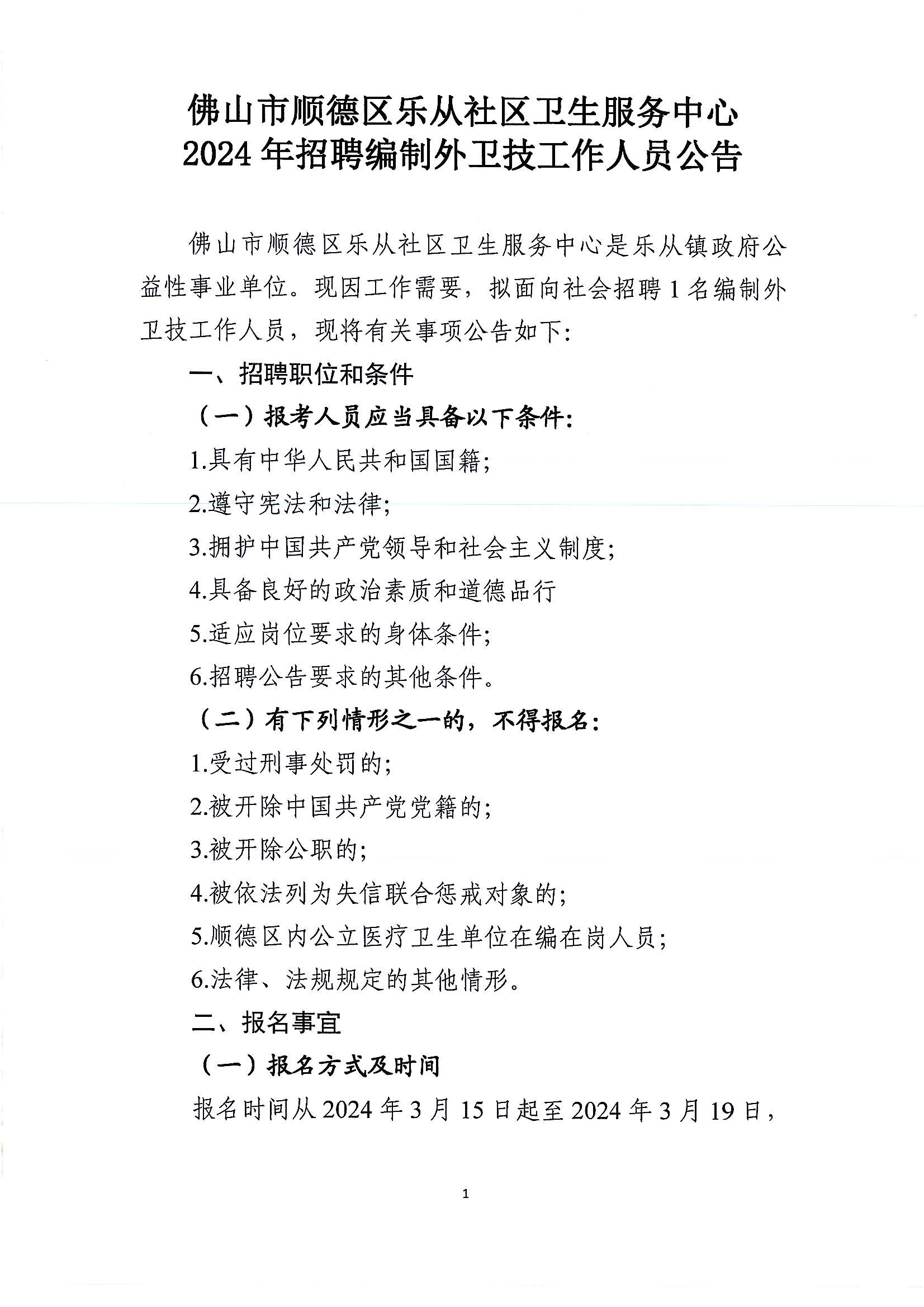 樂從社區(qū)衛(wèi)生服務(wù)中心2024年招聘編制外衛(wèi)技工作人員公告