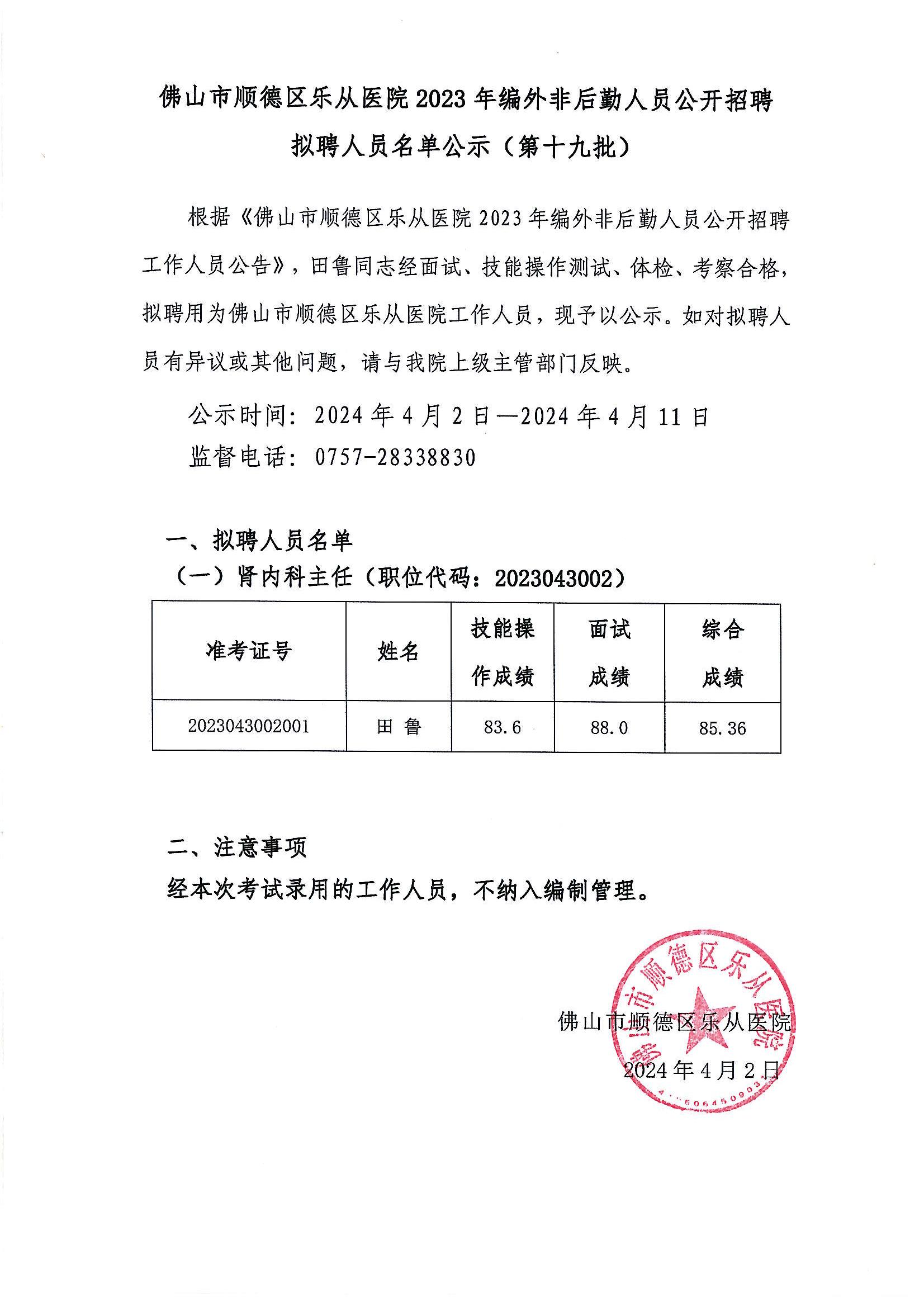 樂從醫(yī)院2023年編外非后勤人員公開招聘擬聘人員名單公示(第十九批)