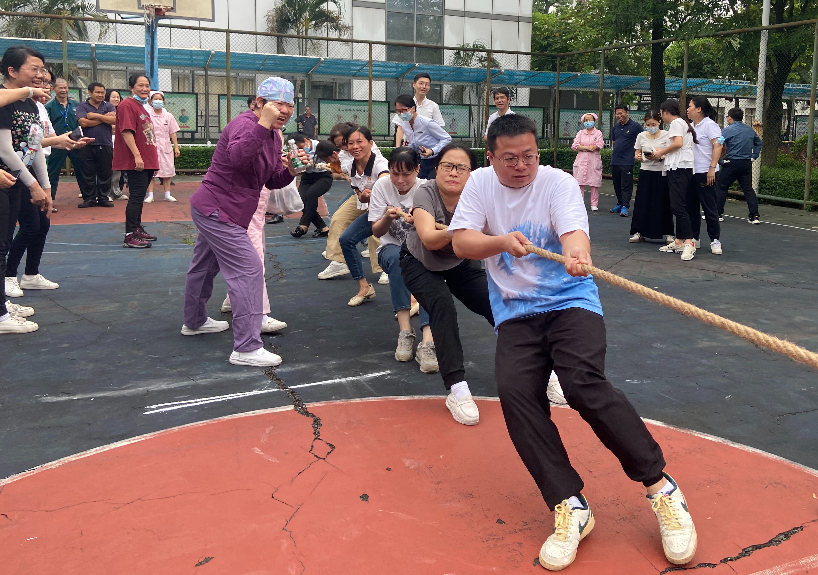 哨聲一響,各科室員工紛紛投入到拔河的激烈競爭中。重癥醫(yī)學(xué)科與麻醉手術(shù)科聯(lián)隊的成員們齊心協(xié)力,他們的手臂上青筋暴露,臉上寫滿了堅定與決心。泌尿外科普外科聯(lián)隊的隊員們也不甘示弱,他們的步伐整齊劃一,仿佛每一次拉扯都在訴說著團(tuán)隊合作的重要性。其他科室聯(lián)隊的隊員們同樣展現(xiàn)出了不俗的實力,他們的配合默契,彰顯了醫(yī)院員工的凝聚力。