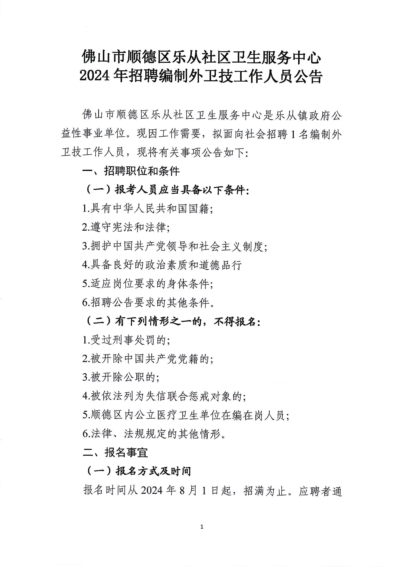 樂從社區(qū)衛(wèi)生服務(wù)中心2024年招聘編制外衛(wèi)技工作人員公告