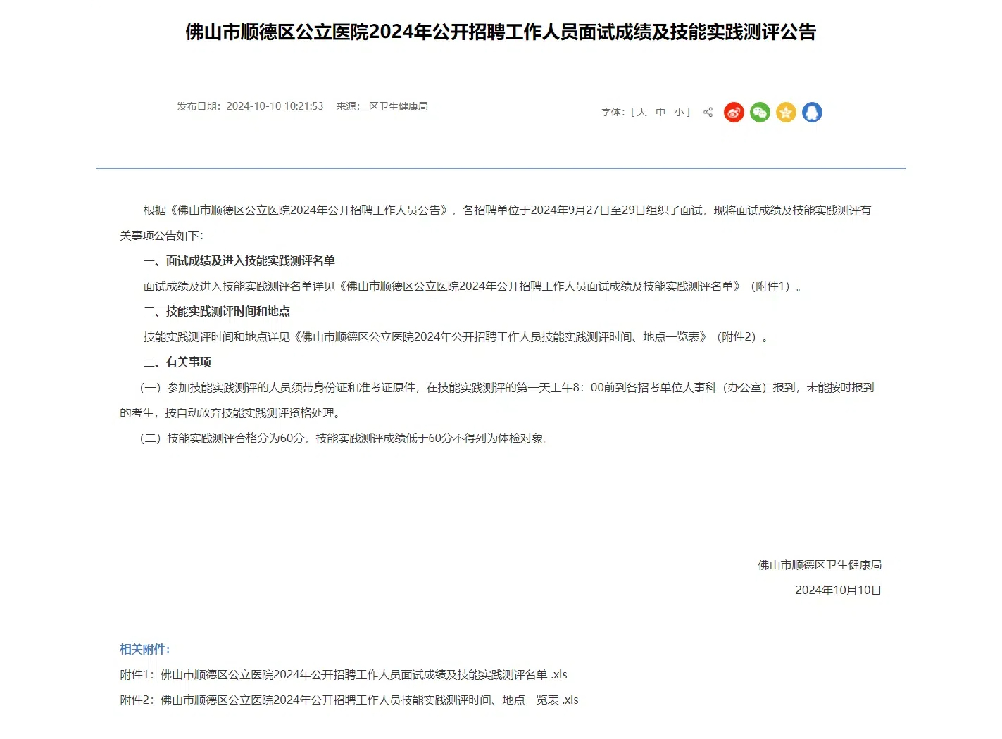 附件1:佛山市順德區(qū)公立醫(yī)院2024年公開招聘工作人員面試成績及技能實踐測評名單.xls