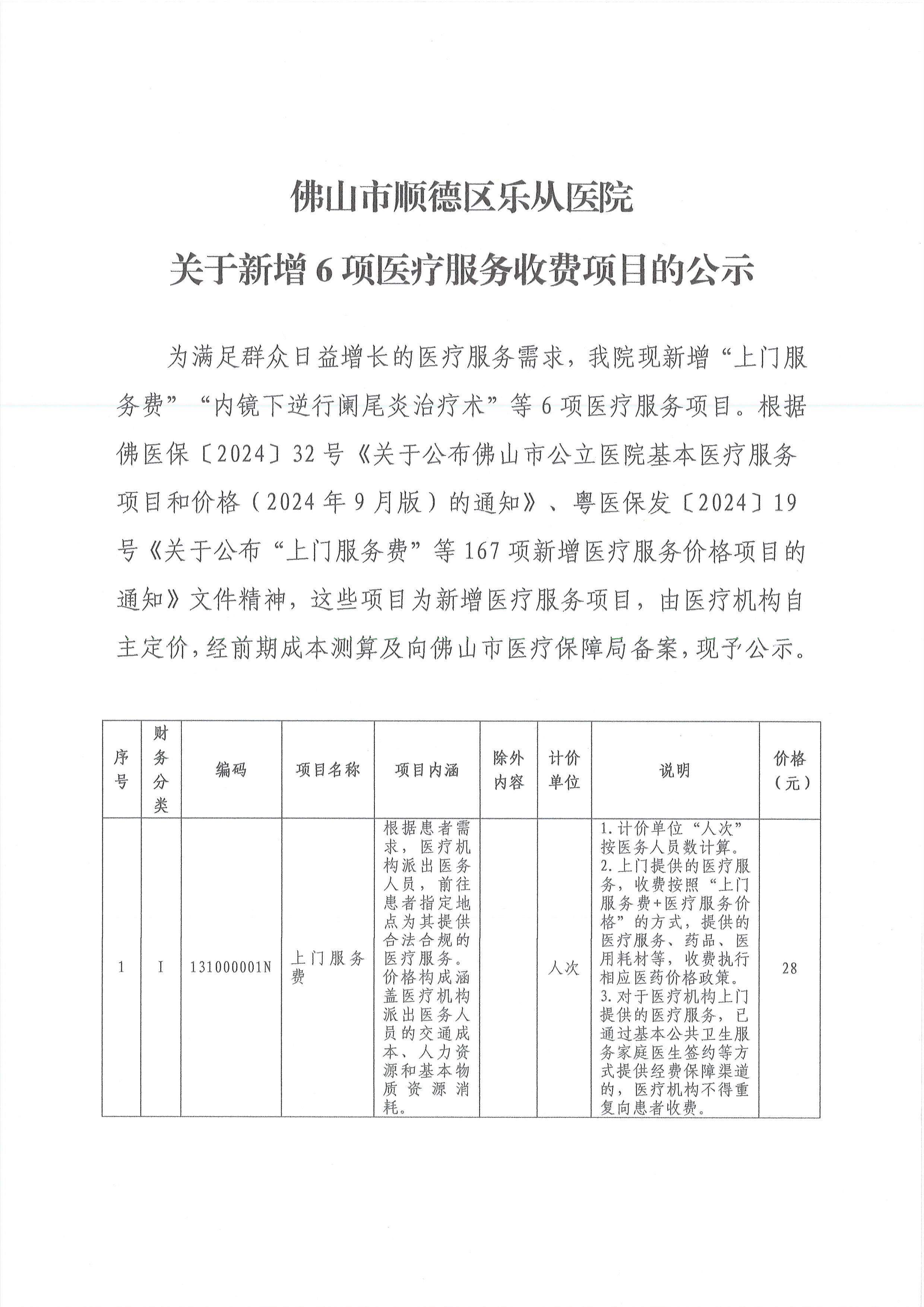 佛山市順德區(qū)樂從醫(yī)院關(guān)于新增6項醫(yī)療服務(wù)收費項目的公示