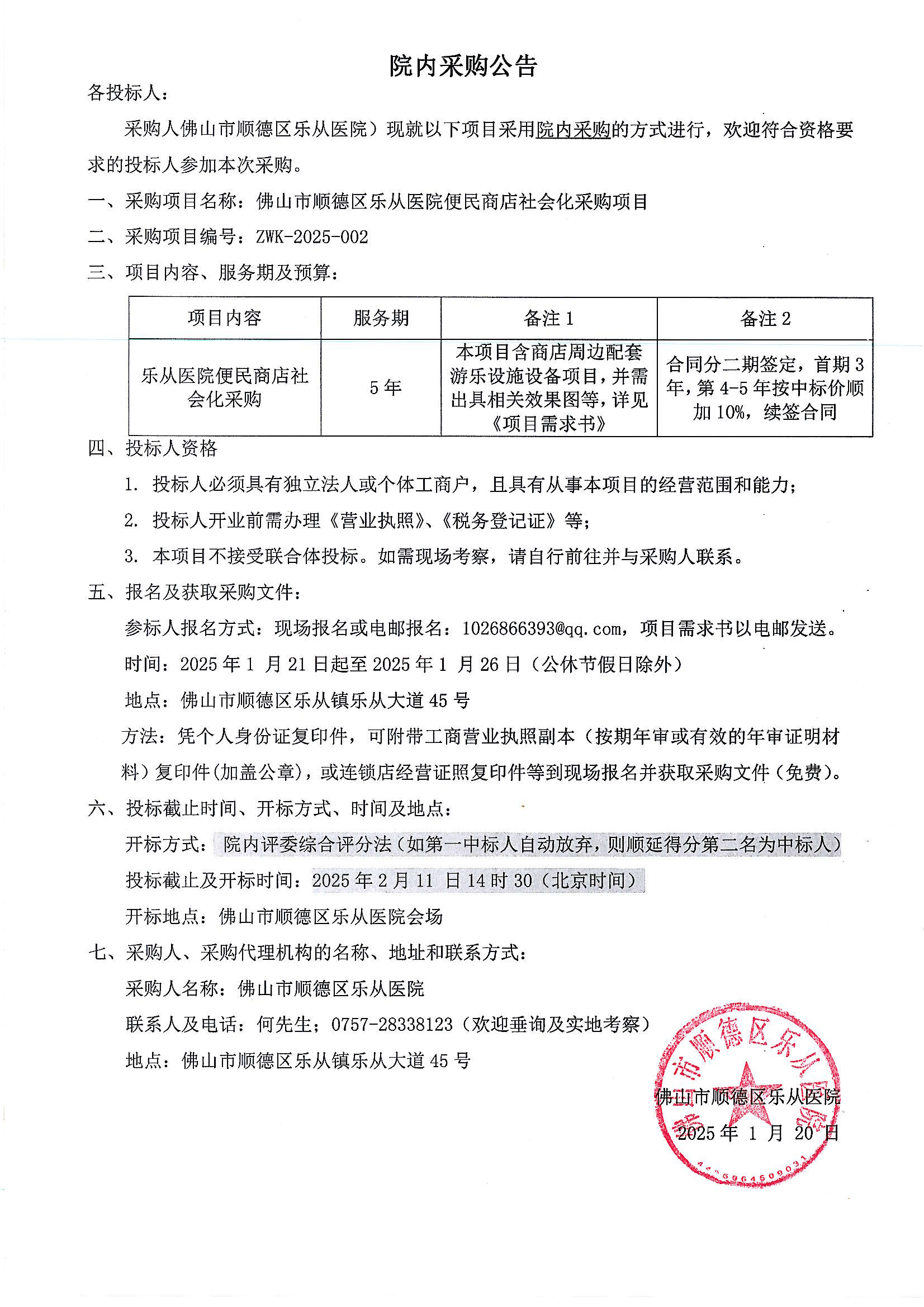 佛山市順德區(qū)樂(lè)從醫(yī)院便民商店社會(huì)化采購(gòu)公告