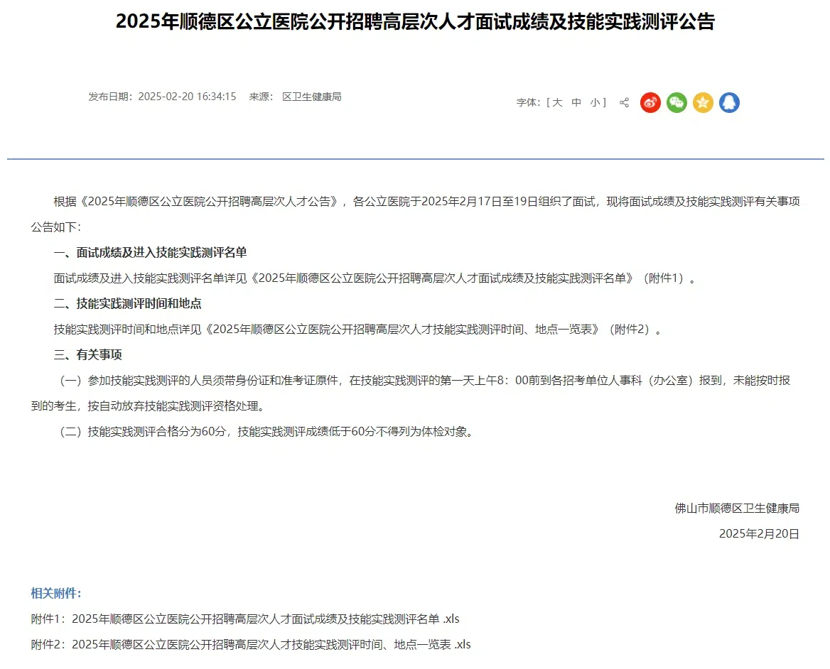 2025年順德區(qū)公立醫(yī)院公開招聘高層次人才面試成績及技能實踐測評公告