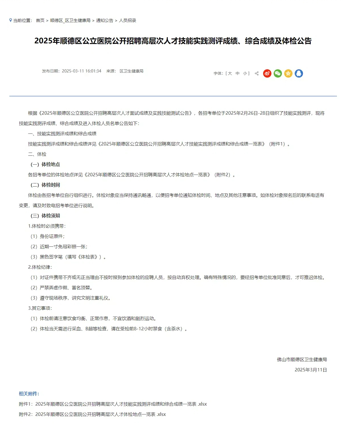 下一篇: 佛山市順德區(qū)樂從醫(yī)院2025年公開招聘編外非后勤工作人員綜合成績(jī)及進(jìn)入體檢人員名單的…