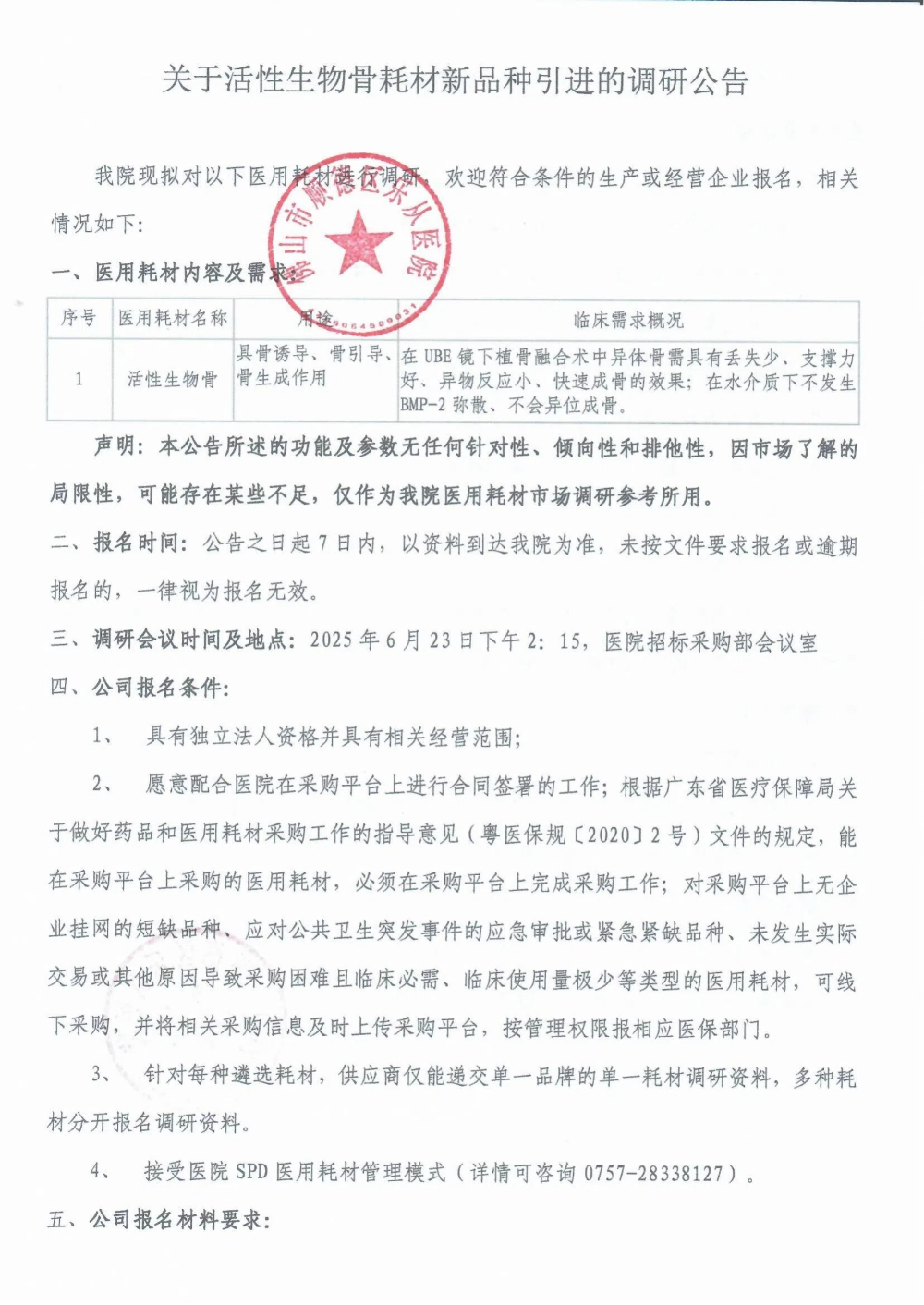 關(guān)于活性生物骨耗材新品種引進的調(diào)研公告