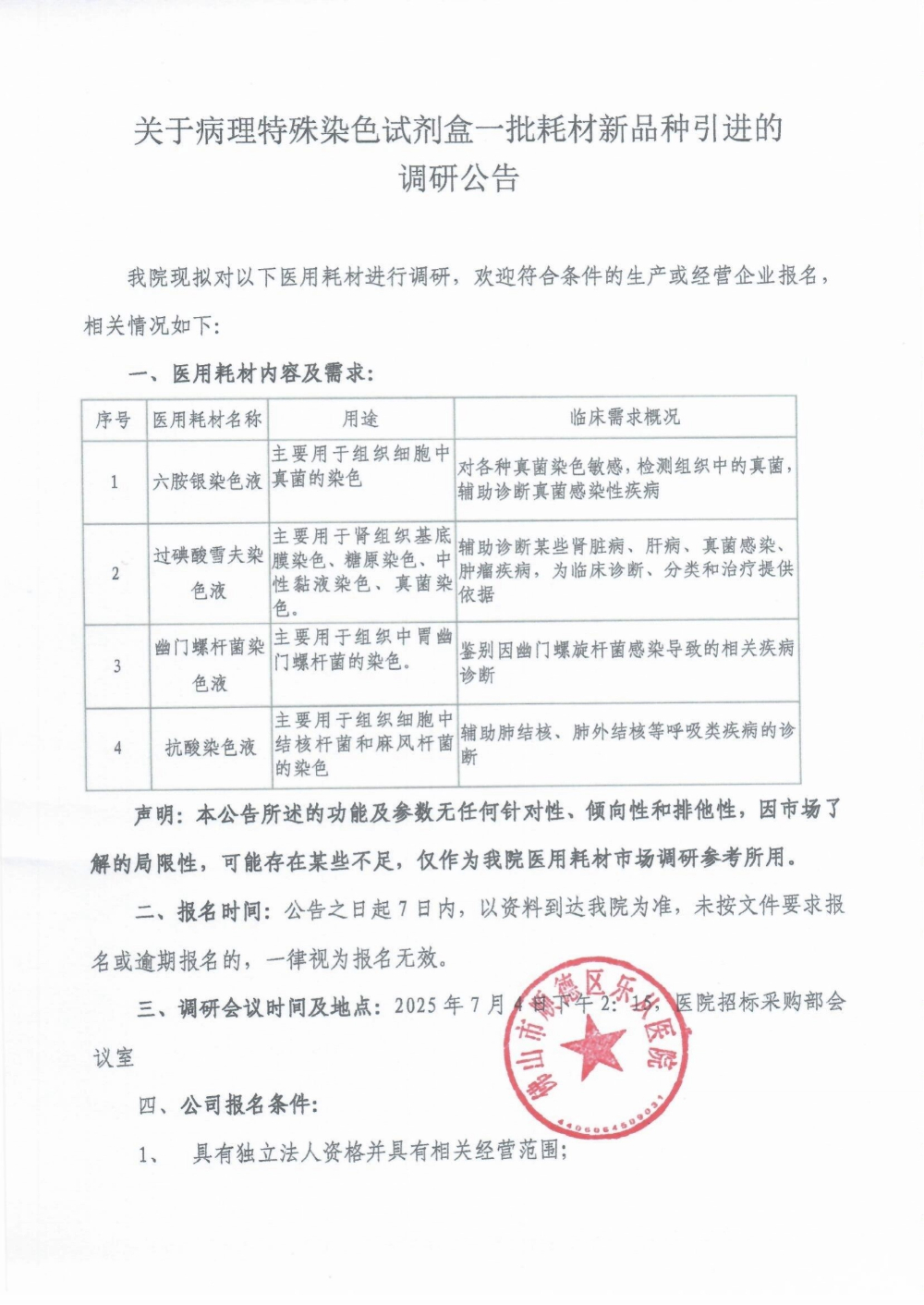 關(guān)于病理特殊染色試劑盒一批耗材新品種引進的調(diào)研公告