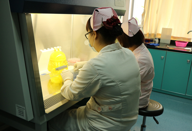 記者來到樂從醫(yī)院2樓的呼吸實(shí)驗(yàn)室,兩名工作人員正在進(jìn)行誘導(dǎo)痰細(xì)胞學(xué)檢測。據(jù)了解,該實(shí)驗(yàn)室由廣州呼吸疾病研究所所長陳榮昌指導(dǎo),主要應(yīng)用于呼吸系統(tǒng)疾病的診斷及治療,目前已開展誘導(dǎo)痰細(xì)胞學(xué)檢測、肺通氣功能檢查、支氣管舒張?jiān)囼?yàn)等項(xiàng)目。