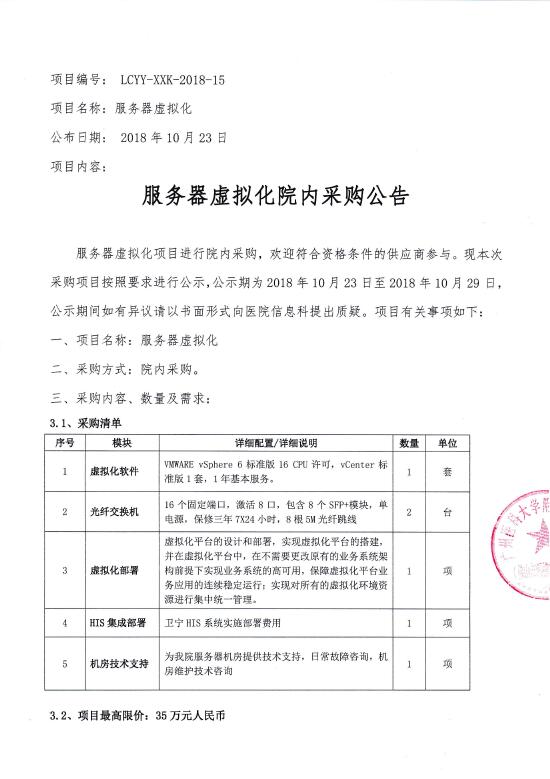 服務(wù)器虛擬化院內(nèi)采購(gòu)公告