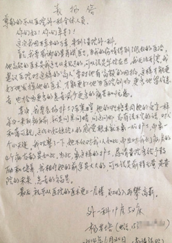 • 患者主動(dòng)送來(lái)表?yè)P(yáng)信 感謝我院醫(yī)務(wù)人員